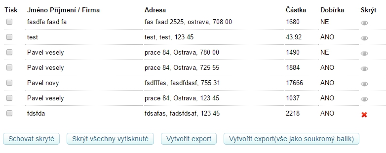 Zde můžete provést export pro PPL aplikaci. Skryté objednávky nelze vyeprtovat.