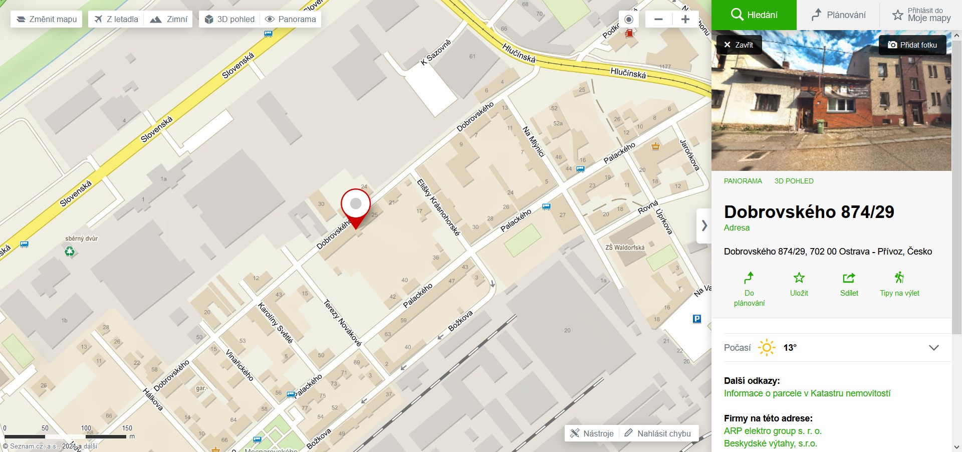 Přejděte na mapy.cz, vyhledejte požadovanou lokalitu a klikněte na Sdílet v pravé části pod adresou, viz obrázek 14-4.
