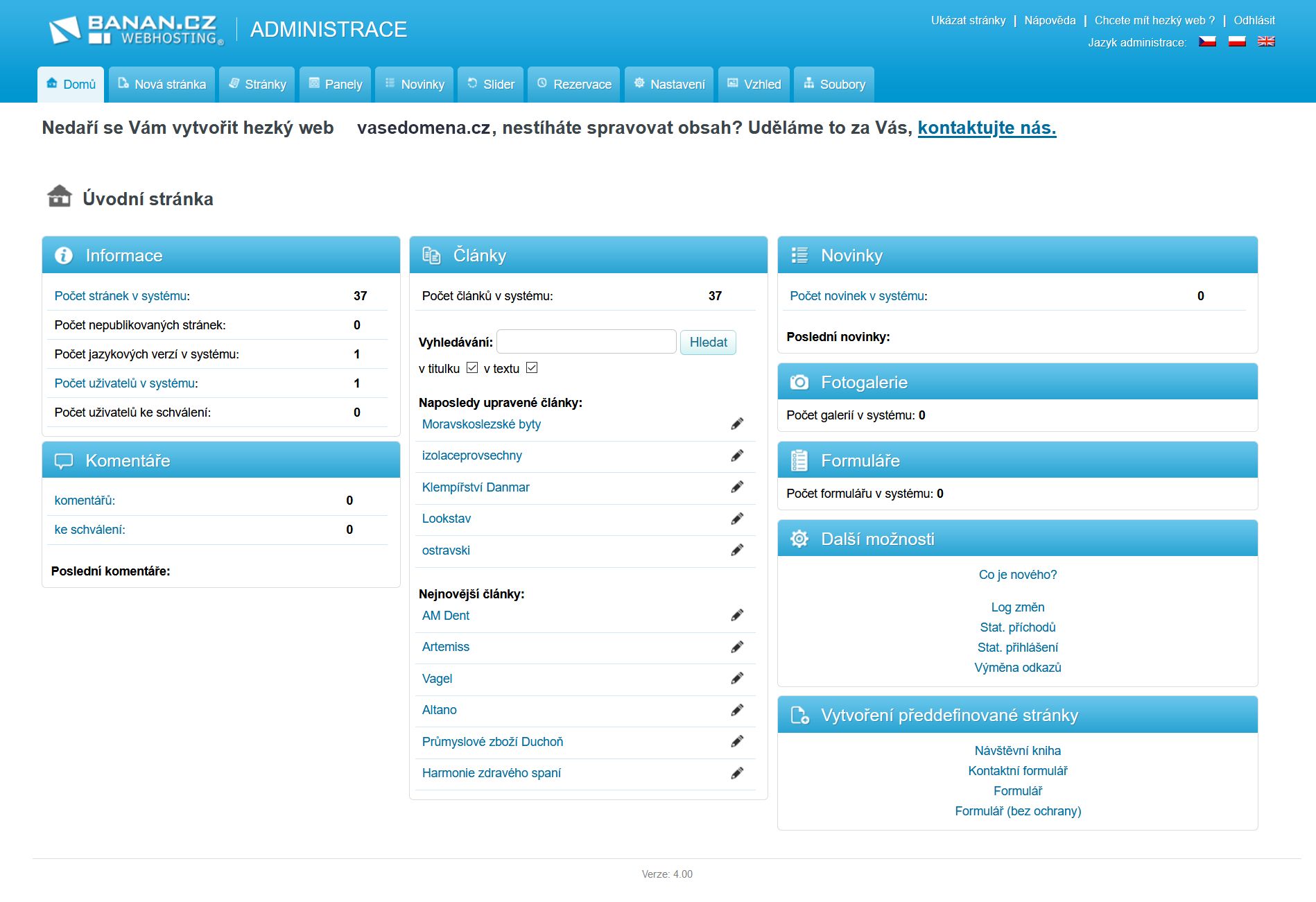 obr. 2-1 Úvodní stránka administrace redakčního systému