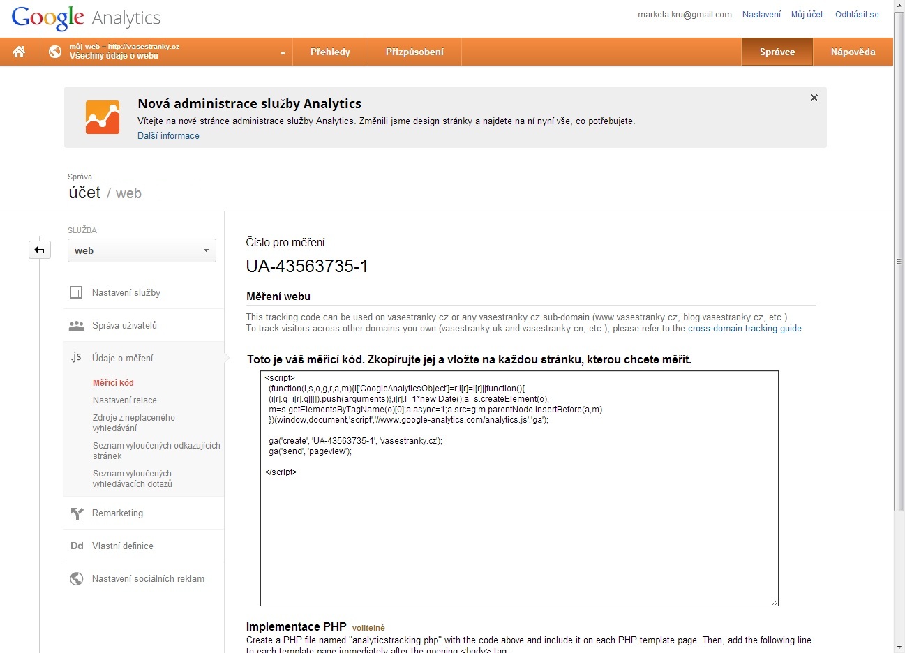 Pozn. Pro využívání Google Analytics je nutné mít založený účet na Googlu.