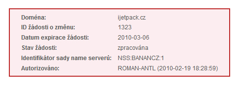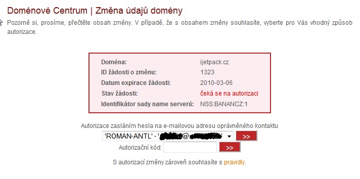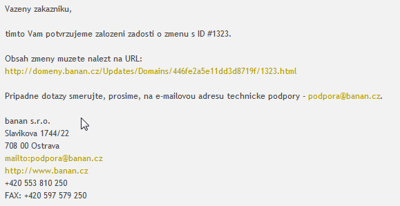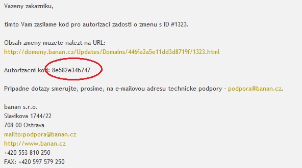 Níže je postup v krocích, jak potvrzovat změny u .cz domén podané přes registrátora banan.cz. Princip potvrzování platí jak pro změnu NSSETU, vlastníka domény nebo zrušení či změnu ostatních kontaktů u domény.