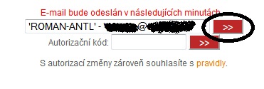 č.4 Na daný email obdržíte autorizační heslo pro změnu.
