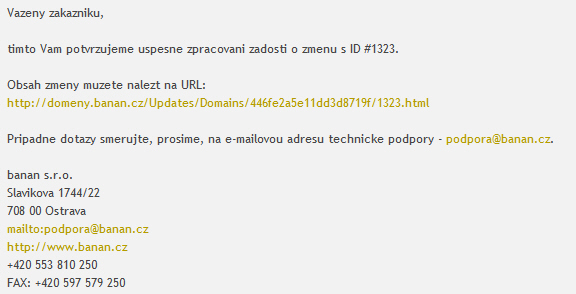 A následně po potvrzení změny Vám bude zaslán email o provedené změně.