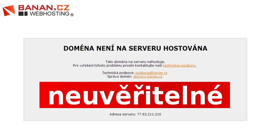 Zobrazuje se Vám na stránkách tato hláška "Doména není na serveru hostována"?